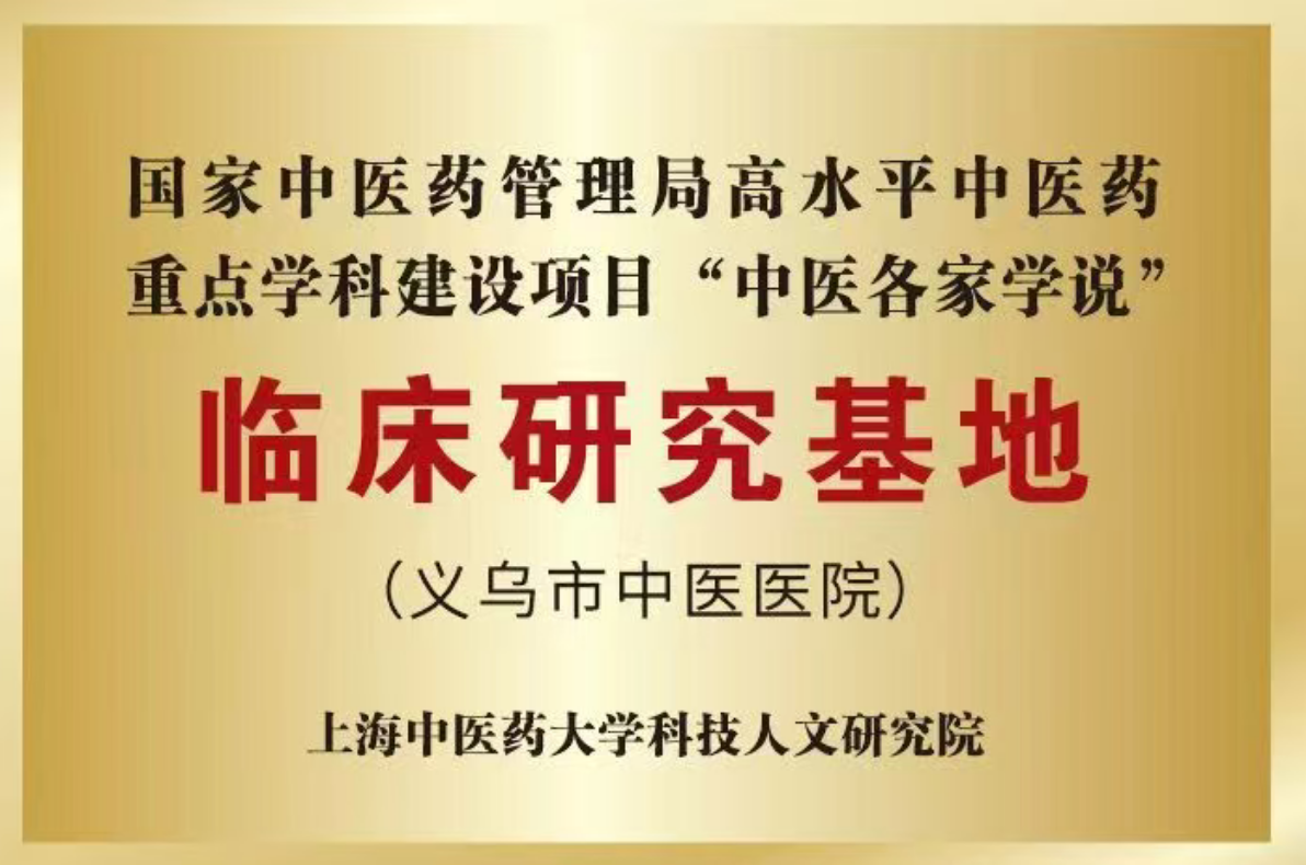 为进一步贯彻落实《国家中医药管理局高水平中医药重点学科建设项目实施方案》文件精神,共同探讨“中医学在当代的创造性转化和创新性发展”,推进“中医各家学说”回归临床,为中医理论创新提供新思路、建立新方法,赋能中医药学术传承和创新,中医各家学说重点学科建设项目在学校支持下,在义乌市中医医院挂牌“国家中医药管理局高水平中医药重点学科建设项目‘中医各家学说’临床研究基地(义乌市中医医院)”。